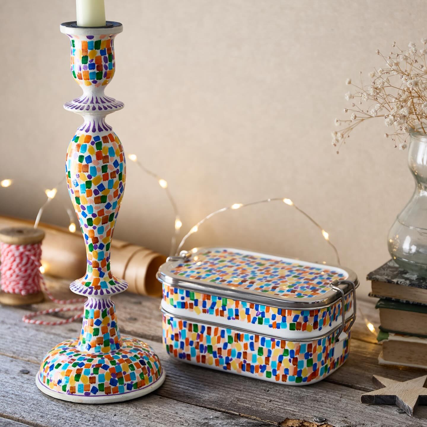 Hand-painted candle sticks and hand-painted tiffin tins stand out because no two pieces are exactly alike. Each brushstroke adds character and charm, making them ideal for: